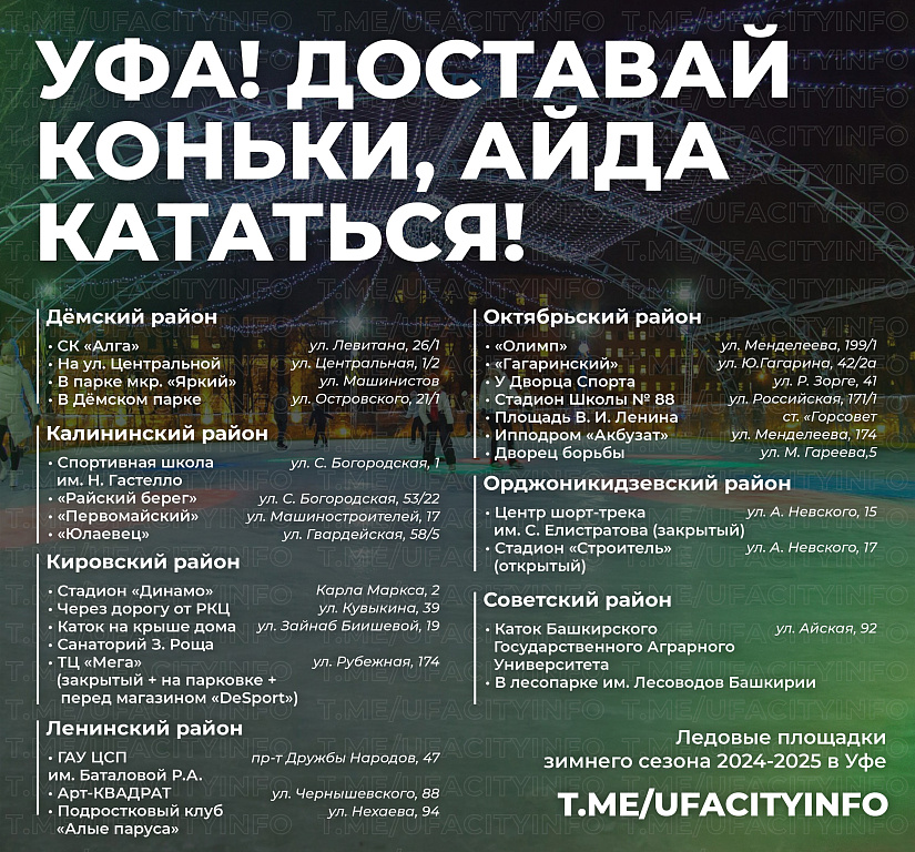 Зимние катки Уфы: где покататься в сезоне 2024-2025