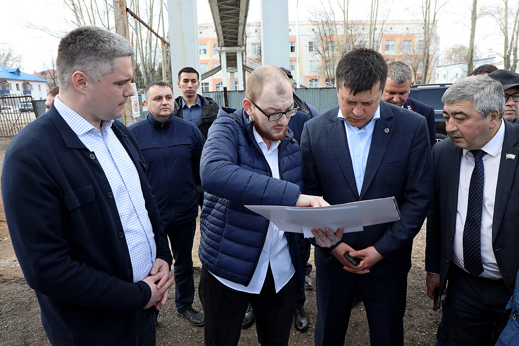 12 апреля глава городского округа, председатель городского Совета Марат Васимов, глава Администрации Уфы Ратмир Мавлиев и глава Демского района Антон Тарасов осмотрели площадку на ул. Центральной, где возводится остановочно-пересадочный комплекс.
