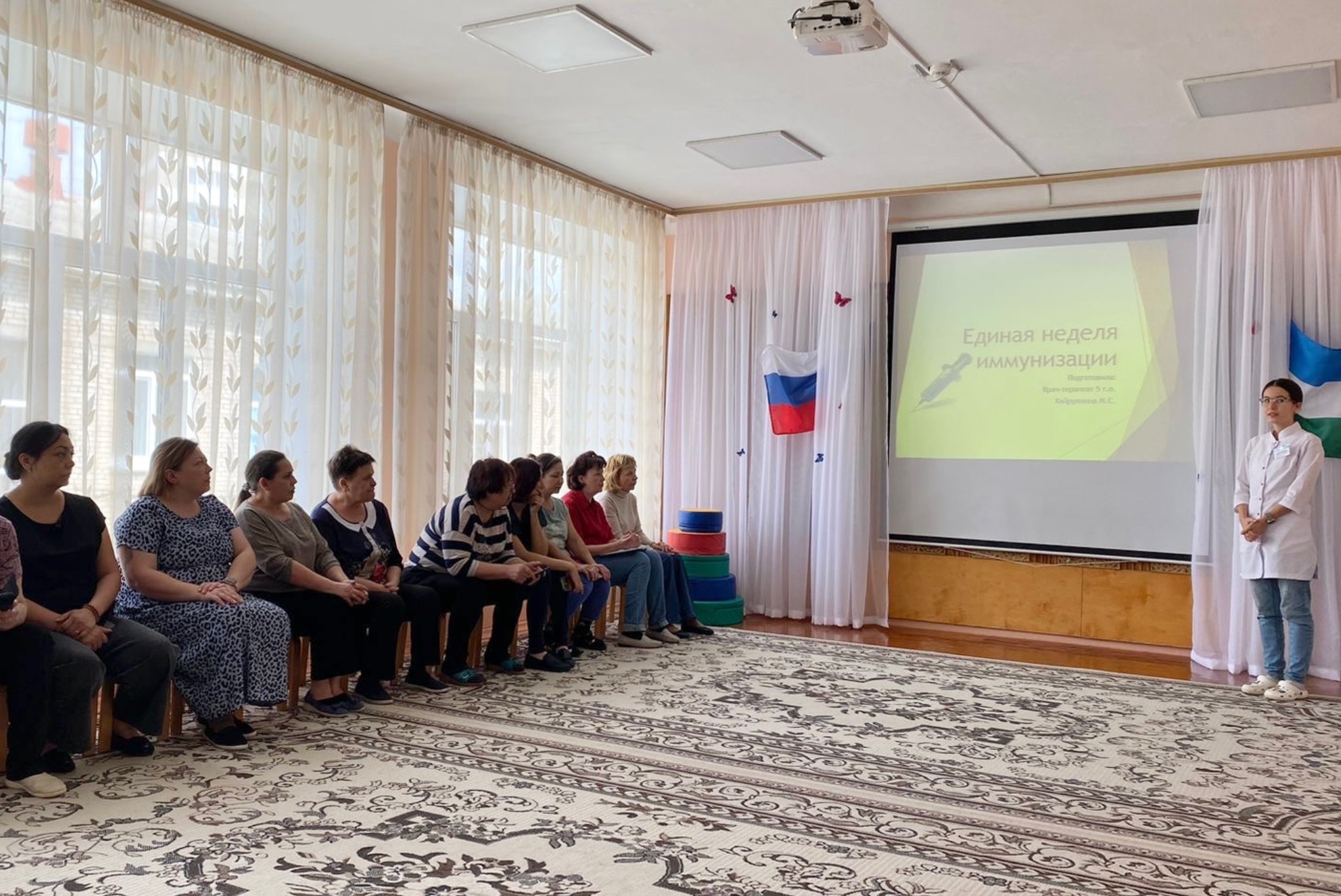 С 24 по 30 апреля в России проходит Единая неделя иммунизации. В рамках акции наш участковый врач-терапевт 5 терапевтического отделения Мария Хайруллина провела профилактическую беседу среди сотрудников дошкольного образовательного учреждения Детский сад № 228 г.Уфа.