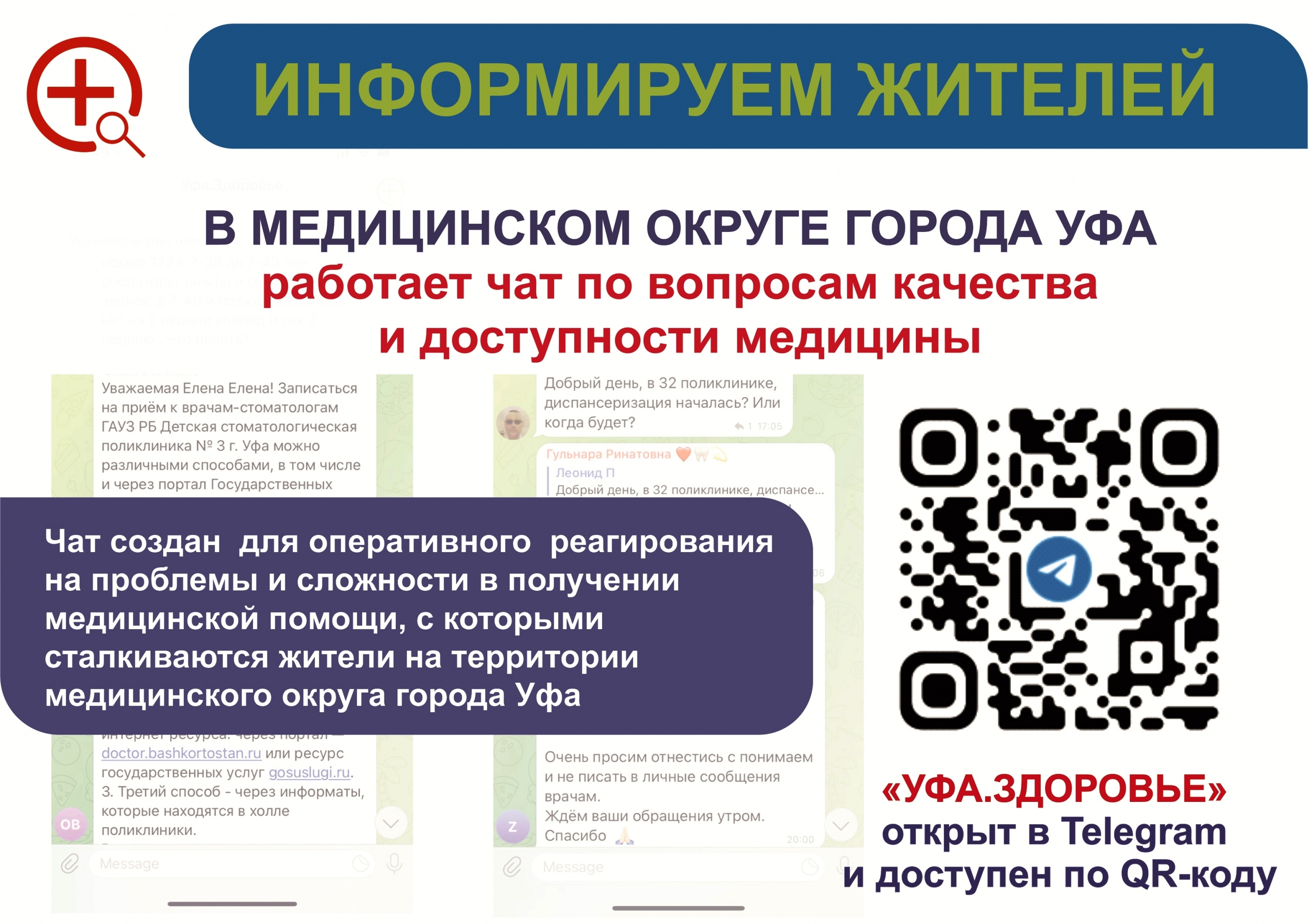 В Башкирии функционируют медицинские чаты в мессенджере «Телеграм». Жители могут задать вопросы, касающиеся медицинского обслуживания, а представитель медорганизации даст ответ в течение двух часов.